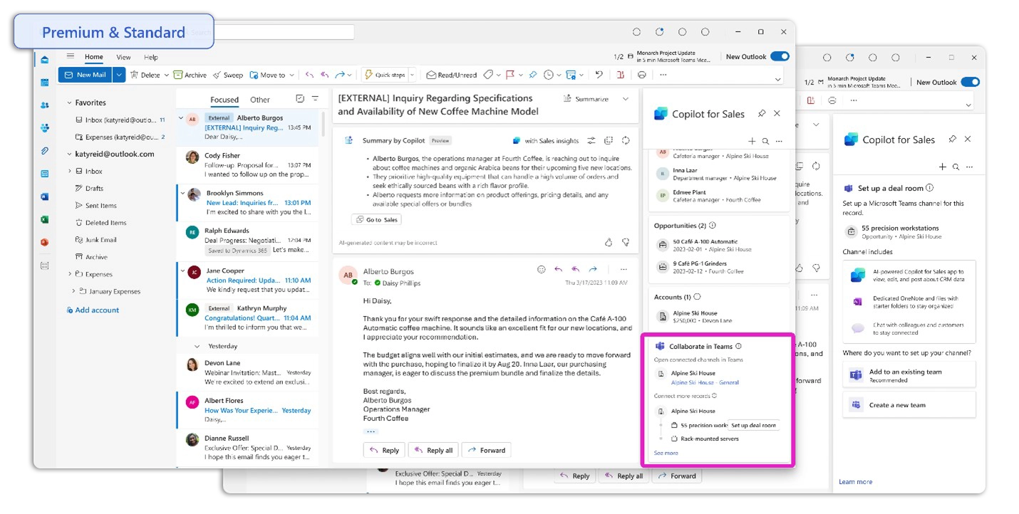 Modern CRMs don’t rely on employees manually entering every detail. With Dynamics 365, data like emails, meetings, and sentiment signals are automatically captures and synced in the background, keeping your CRM up to date without extra effort.
